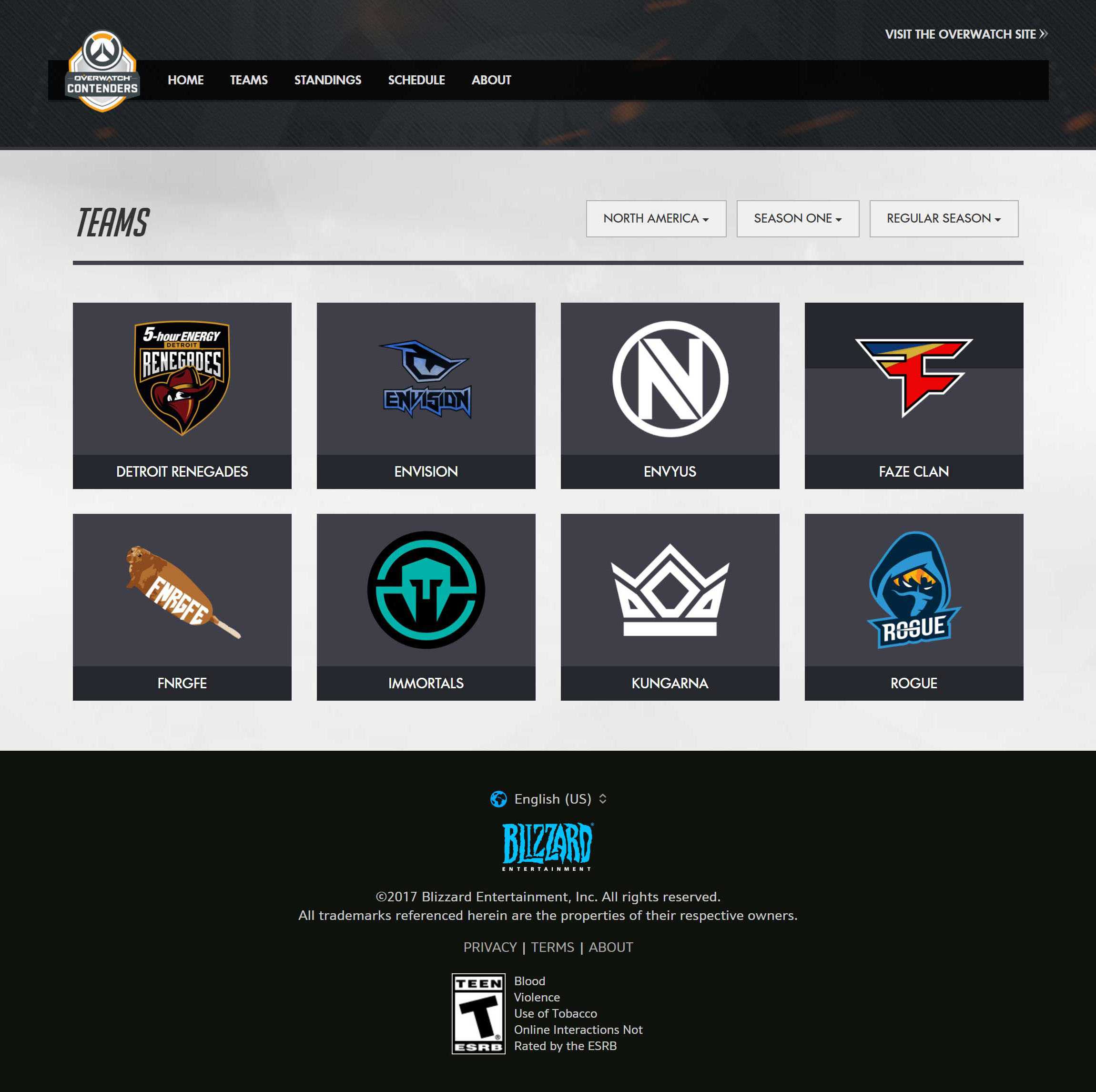 When it came to the website, it was important to have the design to be distinct from the newly announced Overwatch League design but still fit within the Overwatch brand as a whole. To do his we focused on a more darker theme and feel.