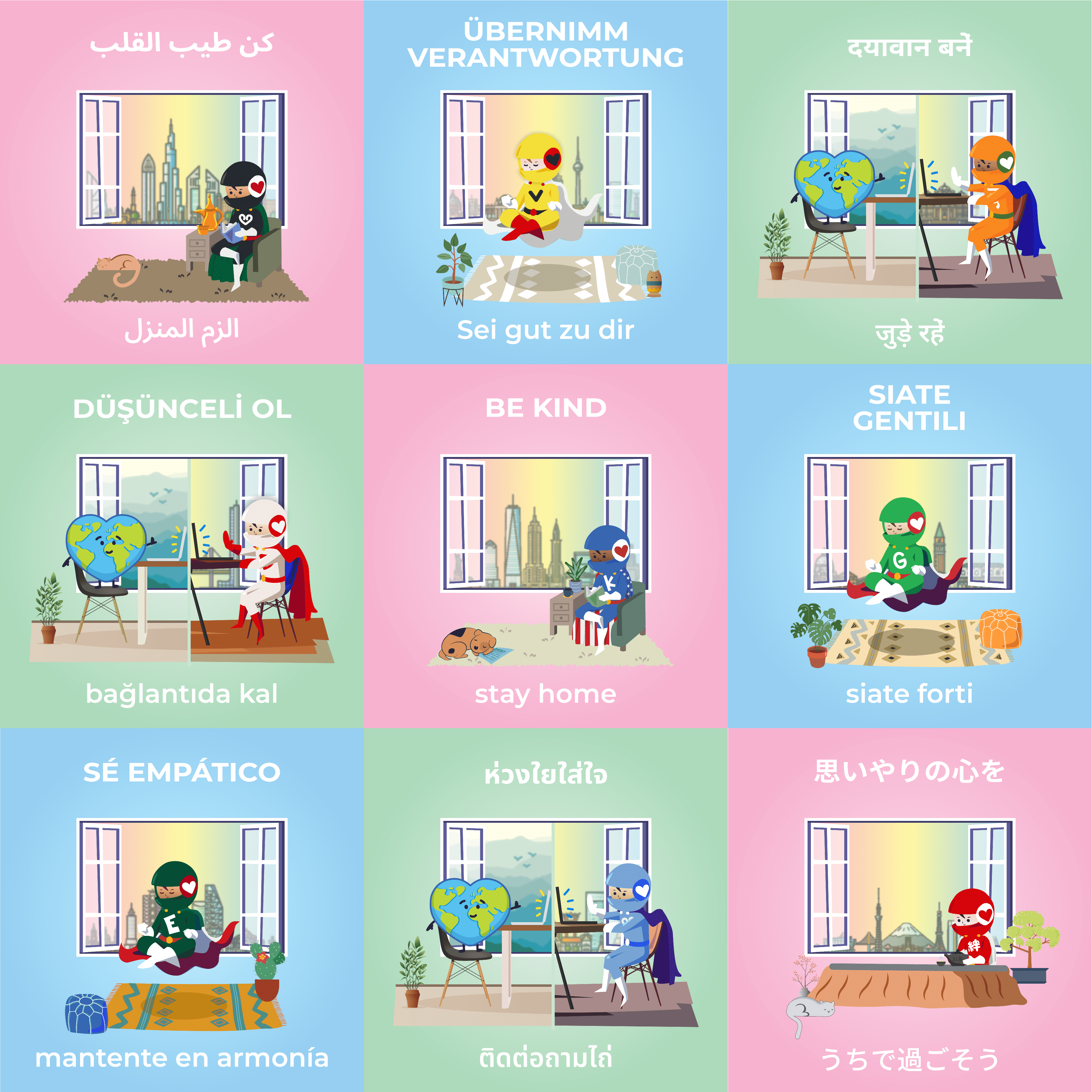 This was a UN submission for their COVID-19 response that the design team at Wordbank worked on. Our designs were chosen among thousands of submissions to portray the message of Kindness. We wanted to really hone in on removing the stigma that staying home is a negative thing and change the narrative. We should not feel trapped or “jailed” at home we should feel empowered that we are making a difference in these trying times. We did this by creating a “Kindness” superhero and then scaled this thought across 10 different cultures. This changes with the translation along with the cityscape backgrounds, the super hero colors, and certain elements of their room. I was so excited to learn more about other cultures and to design something so impact and meaningful.